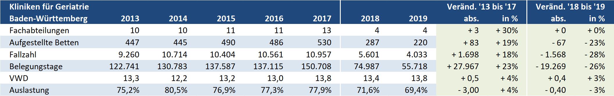 Historische Entwicklung der Kliniken für Geriatrie in Baden-Württemberg