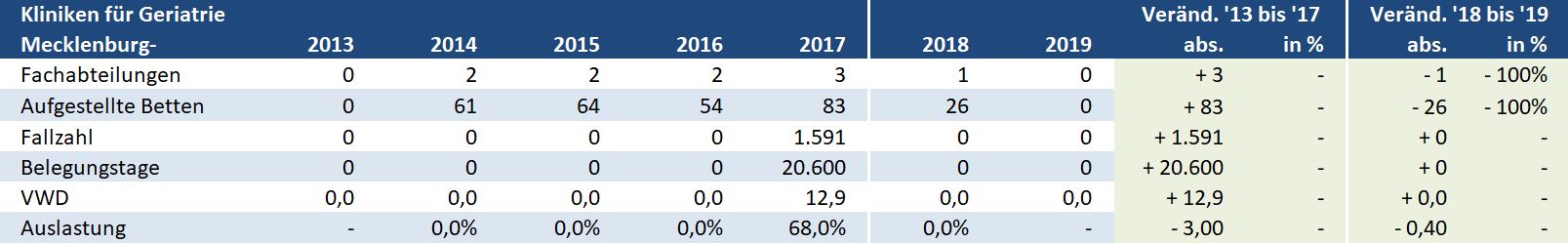 Mecklenburg-Vorpommern: Kliniken für Geriatrie – Versorgungssituation auf Ebene der Landkreise / kreisfreien Städte