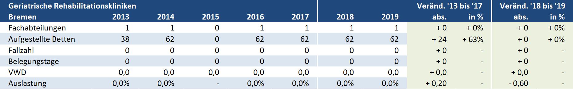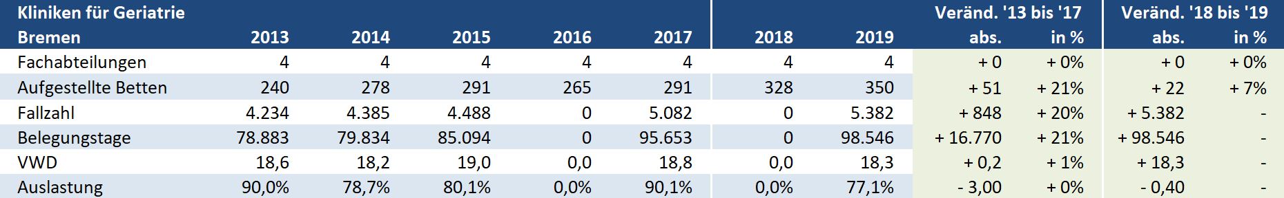 Bremen: Kliniken für Geriatrie – Versorgungssituation auf Ebene der Landkreise / kreisfreien Städte
