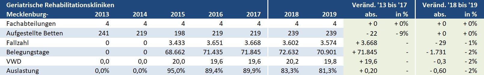 Mecklenburg-Vorpommern: Geriatrische Rehabilitationskliniken – Versorgungssituation auf Ebene der Landkreise / kreisfreien Städte