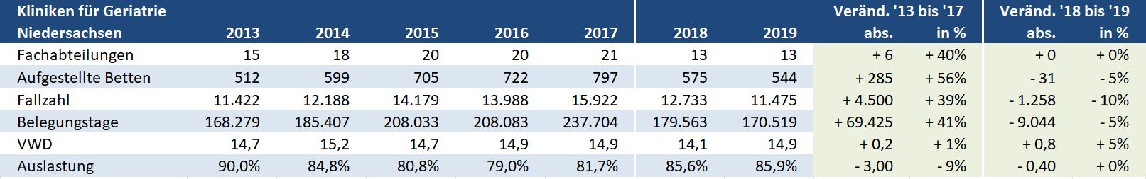 Niedersachsen: Kliniken für Geriatrie – Versorgungssituation auf Ebene der Landkreise / kreisfreien Städte