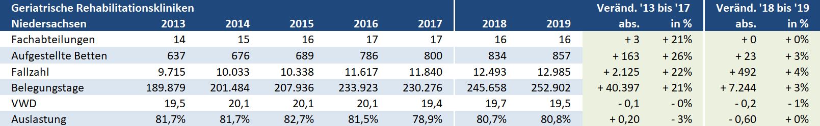 Historische Entwicklung der geriatrischen Rehabilitationskliniken in Niedersachsen
