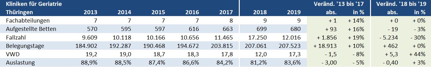 Thüringen: Kliniken für Geriatrie – Versorgungssituation auf Ebene der Landkreise / kreisfreien Städte