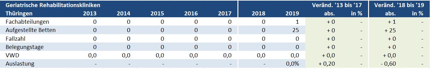 Thüringen: Geriatrische Rehabilitationskliniken – Versorgungssituation auf Ebene der Landkreise / kreisfreien Städte